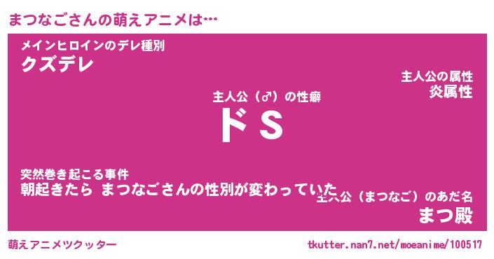 | 2回繰り返すあだ名 | 『まつまつ』『ままつつ』『ぬめぬめ』 |