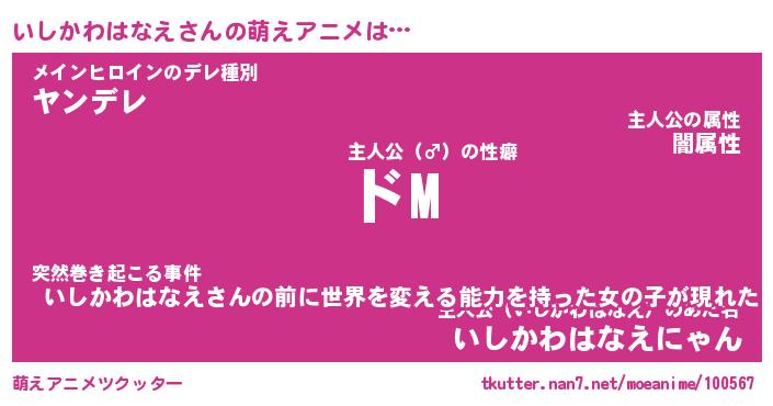 | 男性向けラノベタイトル風あだ名 | 『いしかわはなえの憂鬱』 |