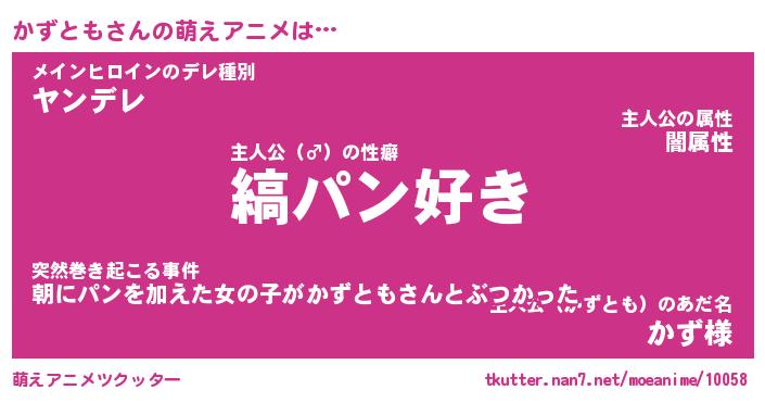 | 意味不明あだ名 | 『ペロリンかずとも』『永久保存かずとも』 |