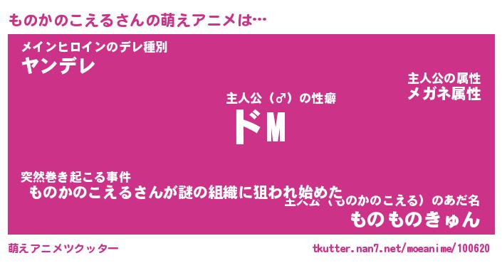 | 男性向けラノベタイトル風あだ名 | 『ものかのこえるの憂鬱』 |