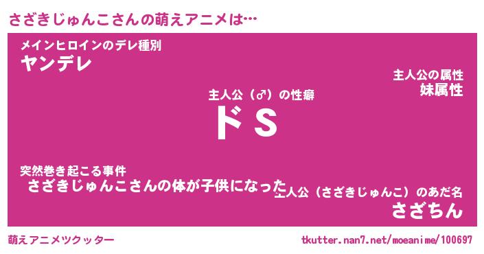 | 男性向けラノベタイトル風あだ名 | 『さざきじゅんこの憂鬱』 |