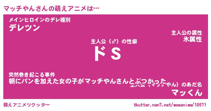 | 男性向けラノベタイトル風あだ名 | 『マッチやんの憂鬱』 |
