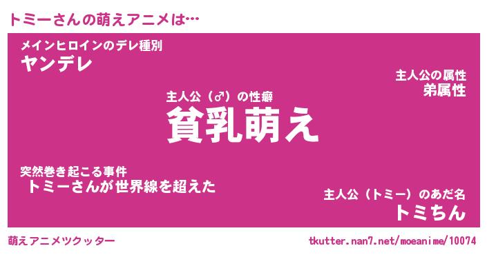 | 女子向けラノベタイトル風あだ名 | 『(仮)トミーのやんごとなき事情』 |