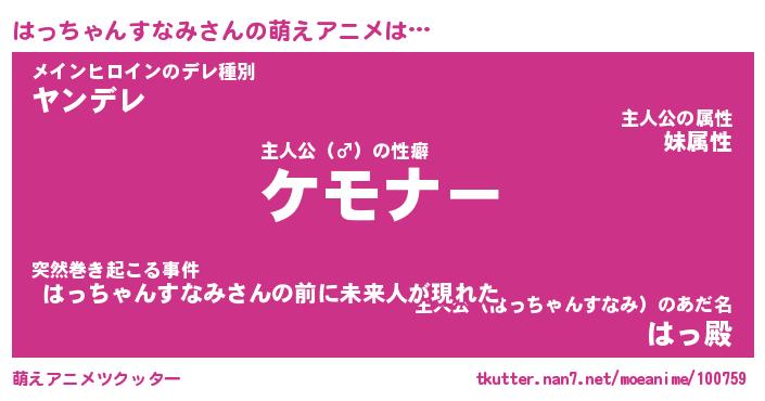 | 女子向けラノベタイトル風あだ名 | 『誰かこのはっちゃんすなみを説明してください! ~契約から始まるウェディング~』 |