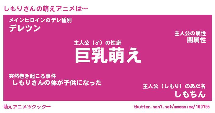 | 男性向けラノベタイトル風あだ名 | 『しもりの憂鬱』 |