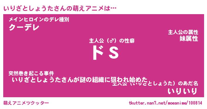 | 男性向けラノベタイトル風あだ名 | 『いりざとしょうたの憂鬱』 |