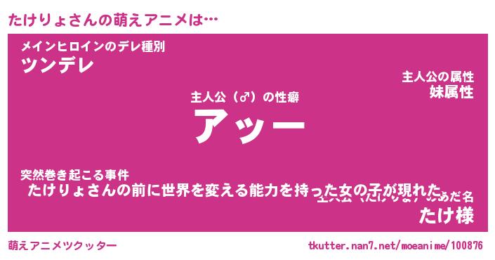 | 男性向けラノベタイトル風あだ名 | 『タケリョアートオンライン』 |