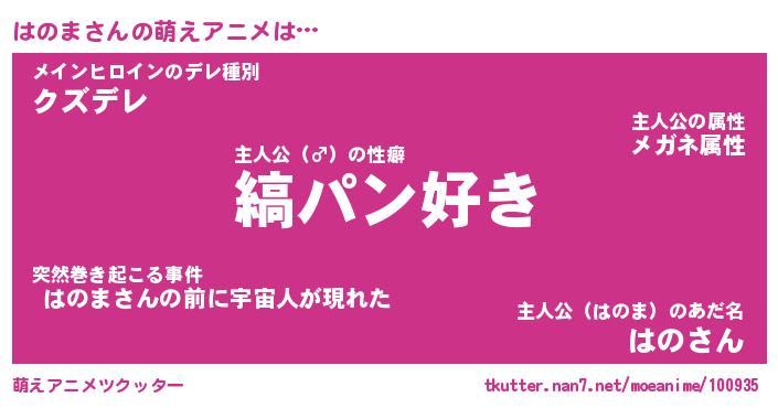 | 男性向けラノベタイトル風あだ名 | 『はのまの憂鬱』 |