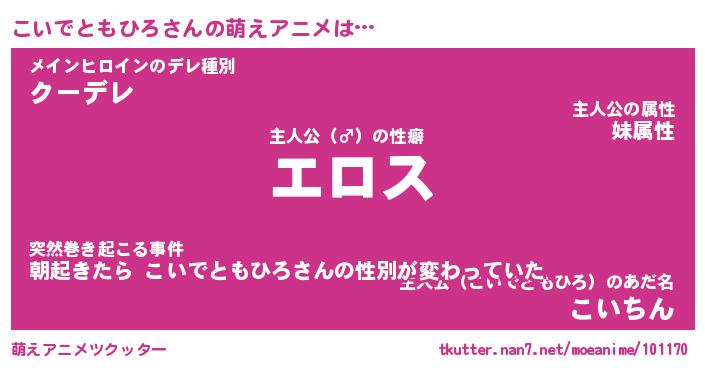 | 女子向けラノベタイトル風あだ名 | 『誰かこのこいでともひろを説明してください! ~契約から始まるウェディング~』 |