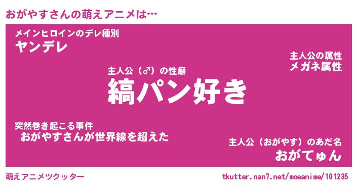 | 男性向けラノベタイトル風あだ名 | 『おがやすの憂鬱』 |