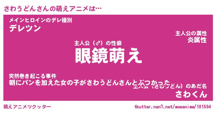 | 男性向けラノベタイトル風あだ名 | 『さわうどんの憂鬱』 |