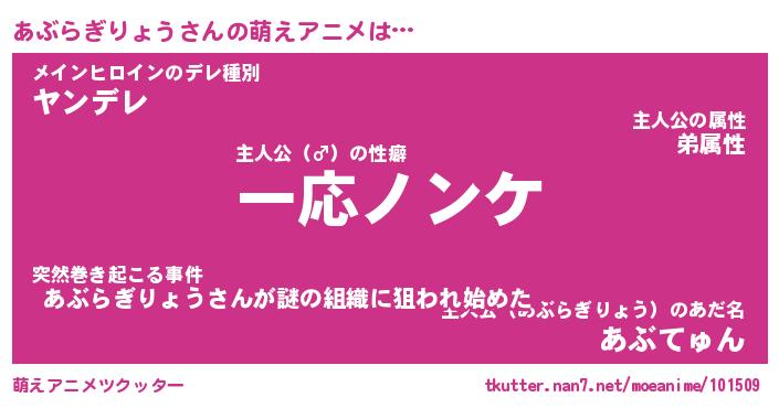 | 男性向けラノベタイトル風あだ名 | 『アブラギリョウアートオンライン』 |
