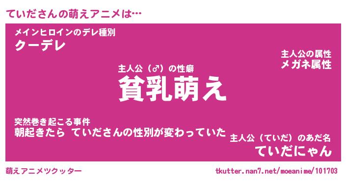 | 男性向けラノベタイトル風あだ名 | 『ていだの憂鬱』 |