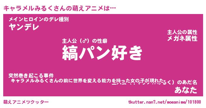 | 男性向けラノベタイトル風あだ名 | 『キャラメルみるくの憂鬱』 |