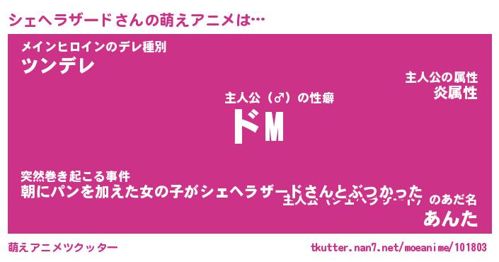 | 男性向けラノベタイトル風あだ名 | 『シェヘラザードの憂鬱』 |
