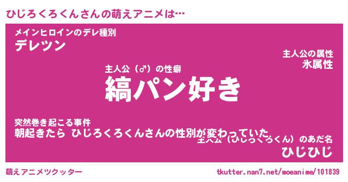 | 男性向けラノベタイトル風あだ名 | 『ひじろくろくんの憂鬱』 |
