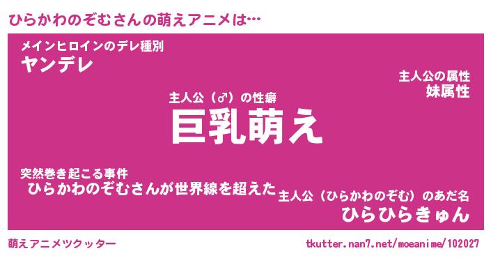 | 男性向けラノベタイトル風あだ名 | 『ひらかわのぞむの憂鬱』 |