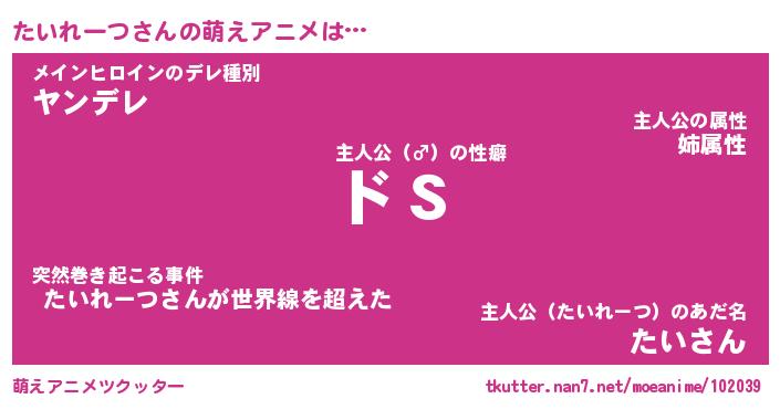 | 男性向けラノベタイトル風あだ名 | 『たいれーつの憂鬱』 |