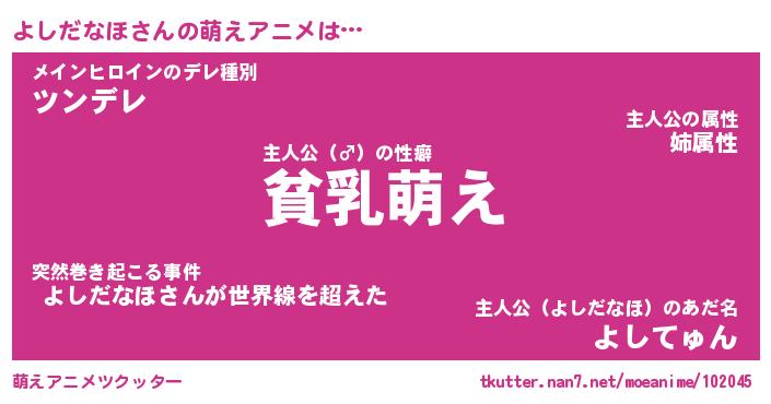 | 男性向けラノベタイトル風あだ名 | 『よしだなほの憂鬱』 |