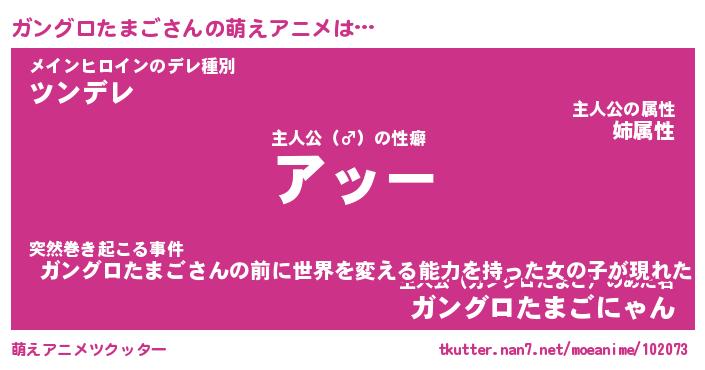 | 男性向けラノベタイトル風あだ名 | 『ガングロタマゴアートオンライン』 |