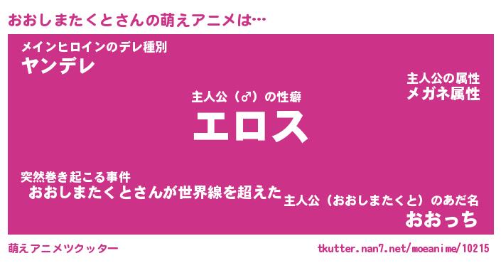 | 男性向けラノベタイトル風あだ名 | 『オオシマタクトアートオンライン』 |
