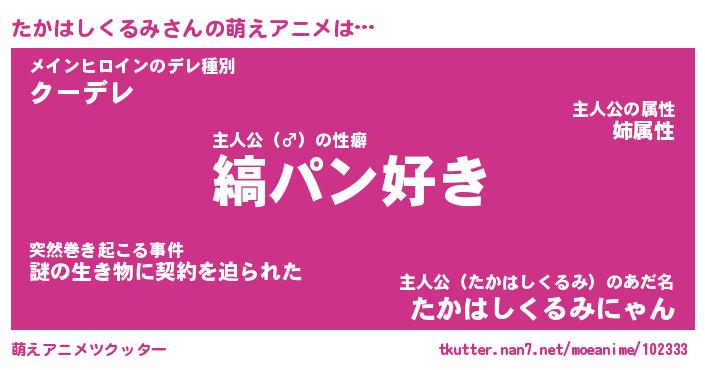 | 女子向けラノベタイトル風あだ名 | 『(仮)たかはしくるみのやんごとなき事情』 |
