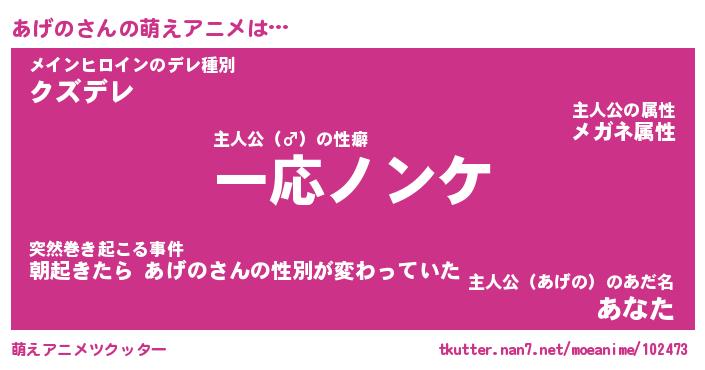 | ヘコむあだ名 | 『あげにー』『レバニラ』『あげ太郎』 |