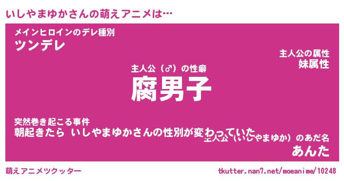 | 男性向けラノベタイトル風あだ名 | 『イシヤマユカアートオンライン』 |