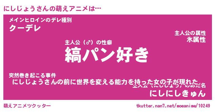 | 男性向けラノベタイトル風あだ名 | 『にしじょうの憂鬱』 |