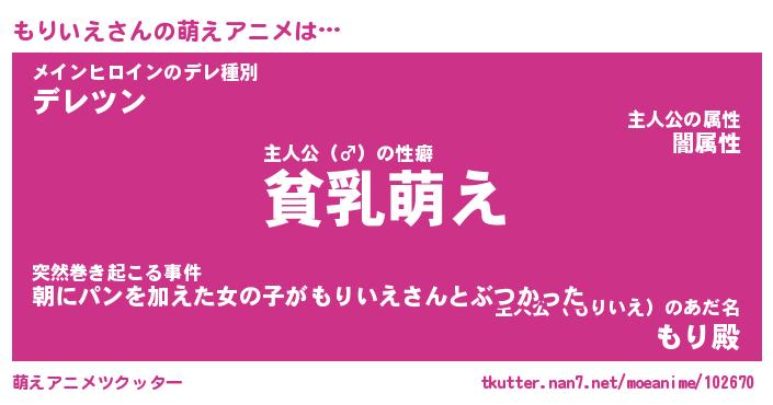 | 男性向けラノベタイトル風あだ名 | 『もりいえの憂鬱』 |