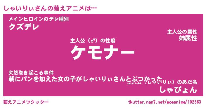 | ヘコむあだ名 | 『しゃにー』『酢こんぶ』『しゃ太郎』 |