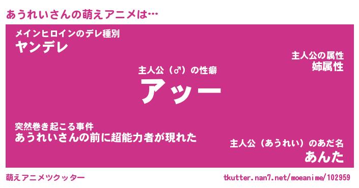 | 女子向けラノベタイトル風あだ名 | 『誰かこのあうれいを説明してください! ~契約から始まるウェディング~』 |