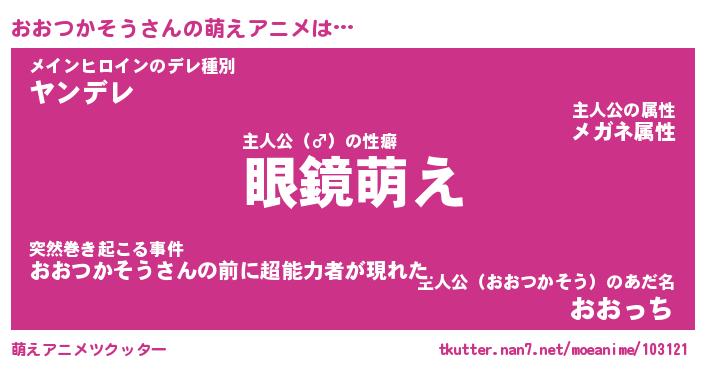 | 男性向けラノベタイトル風あだ名 | 『おおつかそうの憂鬱』 |