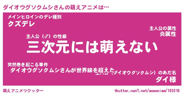 | 男性向けラノベタイトル風あだ名 | 『ダイオウグソクムシアートオンライン』 |