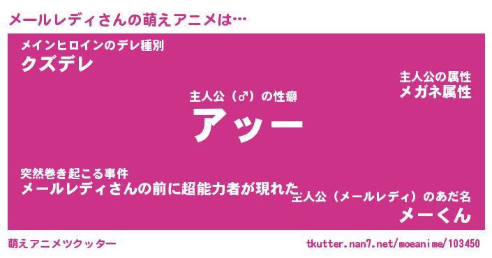 | 女子向けラノベタイトル風あだ名 | 『誰かこのメールレディを説明してください! ~契約から始まるウェディング~』 |