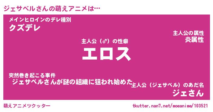 | 女子向けラノベタイトル風あだ名 | 『誰かこのジェサベルを説明してください! ~契約から始まるウェディング~』 |