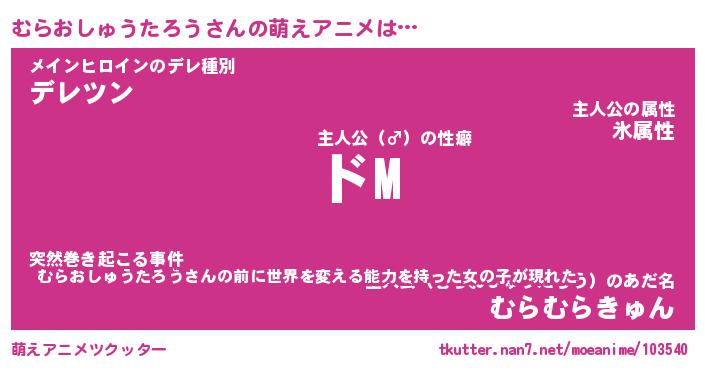 | 女子向けラノベタイトル風あだ名 | 『(仮)むらおしゅうたろうのやんごとなき事情』 |