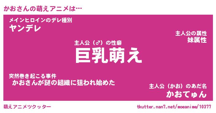 | 男性向けラノベタイトル風あだ名 | 『かおの憂鬱』『ノーゲーム・ノーカオ』 |