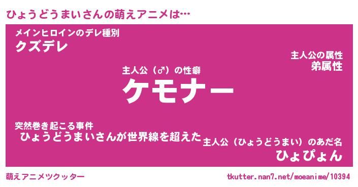 | 男性向けラノベタイトル風あだ名 | 『ヒョウドウマイアートオンライン』 |