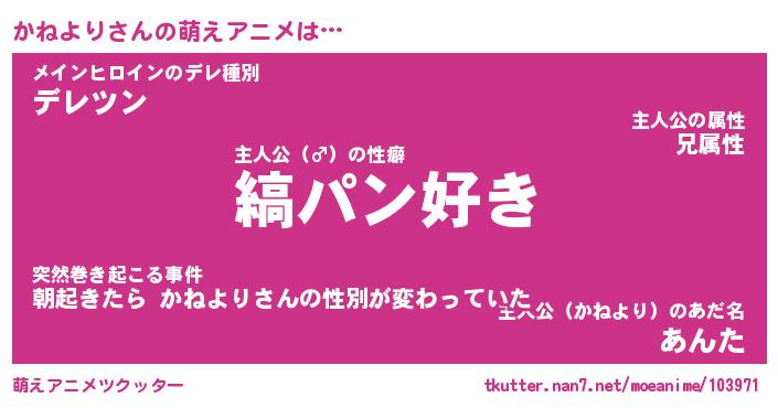 | 女子向けラノベタイトル風あだ名 | 『(仮)かねよりのやんごとなき事情』 |
