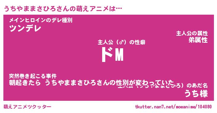 | 女子向けラノベタイトル風あだ名 | 『(仮)うちやままさひろのやんごとなき事情』 |