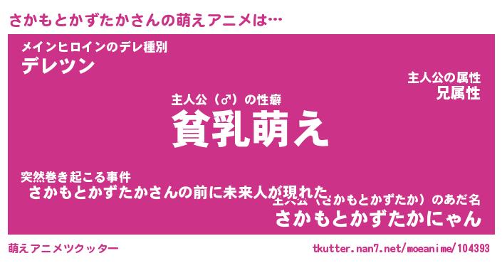 | 男性向けラノベタイトル風あだ名 | 『さかもとかずたかの憂鬱』 |