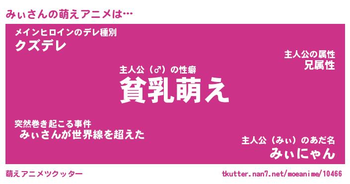 | 男性向けラノベタイトル風あだ名 | 『みぃの憂鬱』 |