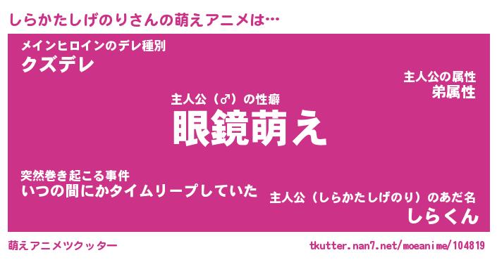 | 男性向けラノベタイトル風あだ名 | 『しらかたしげのりの憂鬱』 |