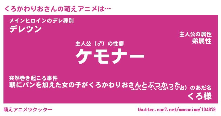 | 2回繰り返すあだ名 | 『くろくろ』『くくろろ』『こつこつ』 |