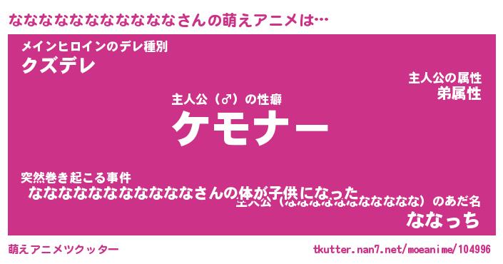 | 胡散臭い通販商品みたいなあだ名 | 『億万長者になれるブレスレット…その名も「ななななななななななな」』 |