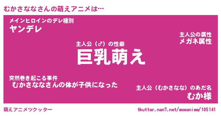 | 男性向けラノベタイトル風あだ名 | 『むかさななの憂鬱』 |