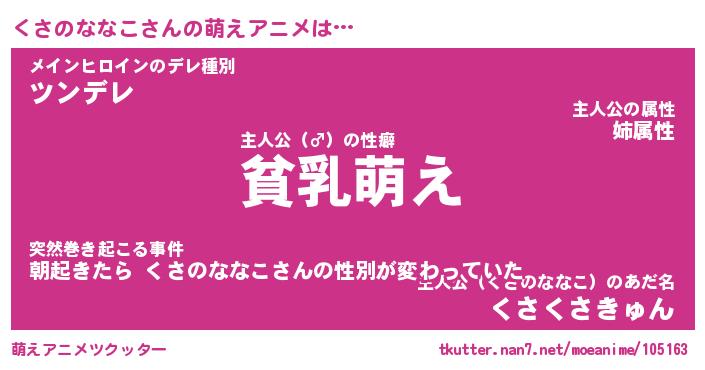 | 男性向けラノベタイトル風あだ名 | 『くさのななこの憂鬱』 |