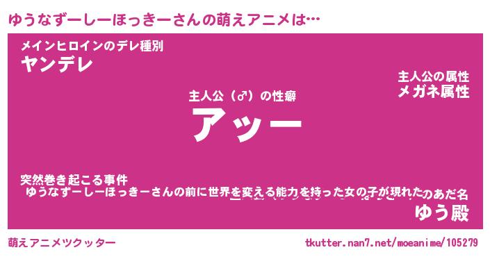 | 女子向けラノベタイトル風あだ名 | 『誰かこのゆうなずーしーほっきーを説明してください! ~契約から始まるウェディング~』 |