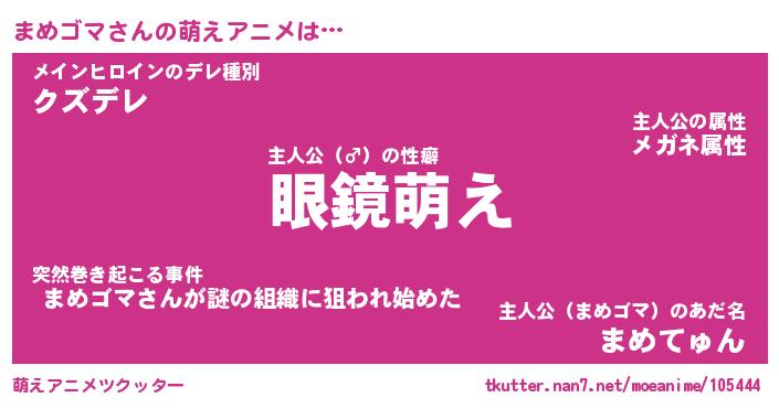 | 男性向けラノベタイトル風あだ名 | 『まめゴマの憂鬱』 |